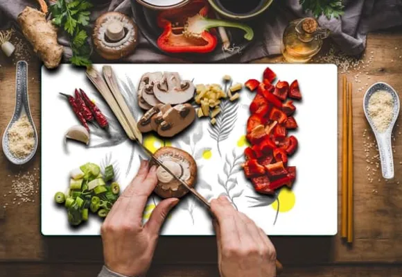 SKÄRBRÄDA I GLAS 52x30 BLOMMOR