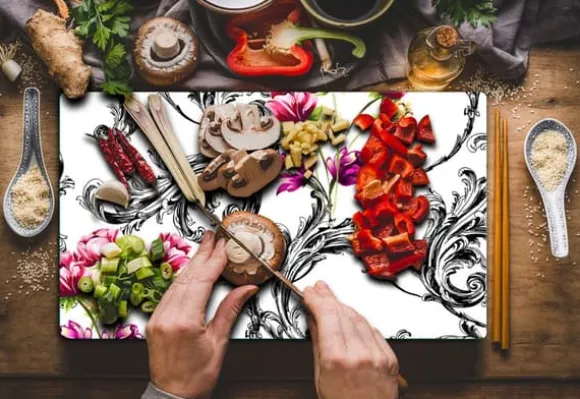 SKÄRBRÄDA I GLAS 52x30 BLOMMOR