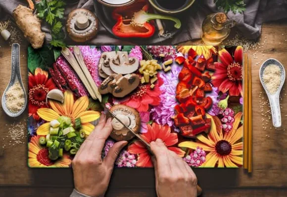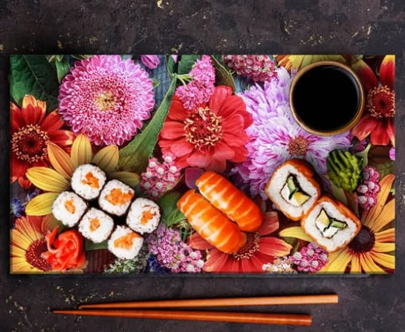 SKÄRBRÄDA I GLAS 52x30 BLOMMOR