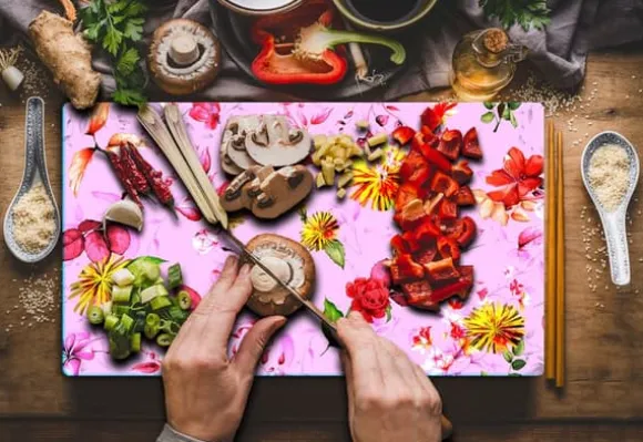 SKÄRBRÄDA I GLAS 52x30 BLOMMOR