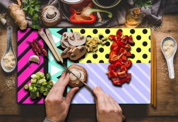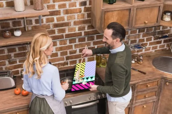 (finns i vår butik) då kan avståndet från brännaren vara mindre . Tryck inte kastruller etc. mot glas med grafik när du lagar mat . ✅Skärbräda ✅Serveringstallrik (kall tallrik) ✅Ställ för varm gryta ✅Extra arbetsyta