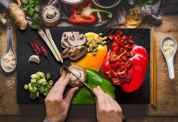 SKÄRBRÄDA I GLAS 52x30 PAPRIKA