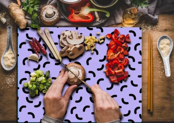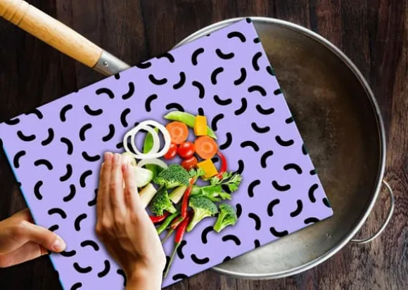 speciell skumtejp (finns i vår butik) då kan avståndet från brännaren vara mindre . Tryck inte kastruller etc. mot glas med grafik när du lagar mat . ✅Skärbräda ✅Serveringstallrik (kall tallrik) ✅Ställ för varm gryta ✅Extra