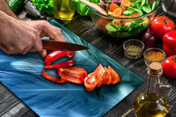 SKÄRBRÄDA I GLASPLATTA 52×40 FJÄDRAR