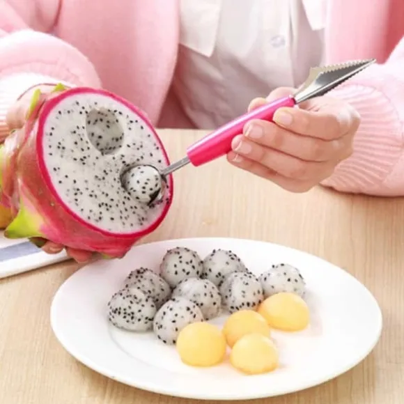 Skapa fina runda bollar av exempelvis frukt, glass och melon! Perfekta för att piffa upp serveringen. Denna melonskopa går även bra att använda till annan frukt och som glasskopa. Skopan har även en vass sida för att skapa snygga snitt i frukten.