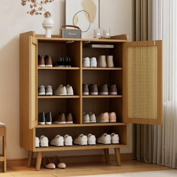 Ge din hall ett naturligt och elegant lyft med detta rotting-skoskåp – perfekt kombination av design, funktion och trygghet.