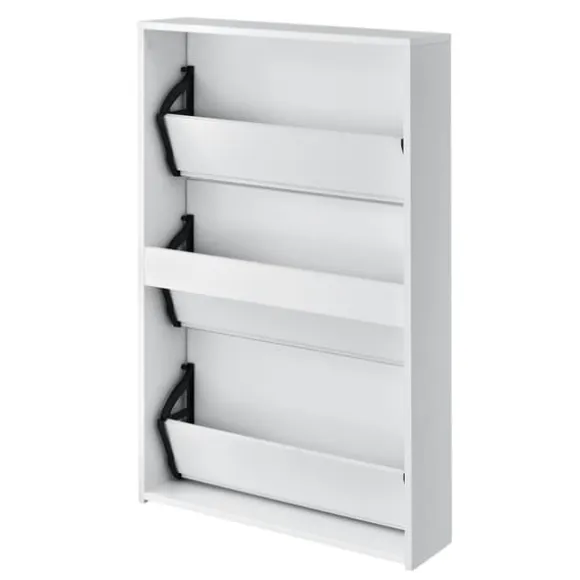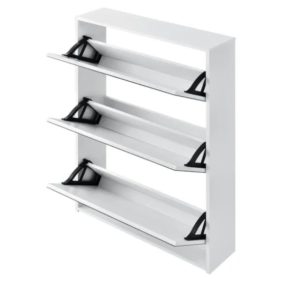[en.casa] Skoskåp-med 3 lådor och spegel-102,5x63x17cm-plats för 9 par skor-vit