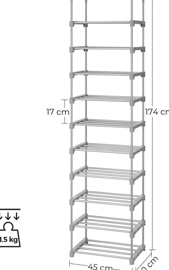 – Nya skor är välkomna! Måste du ge upp många av dina skor på grund av platsbrist? Det är synd för dig som ett komplett skofreak! Detta 10-lagers skoställ ger dig gott om förvaringsutrymme för alla dina nya skor!