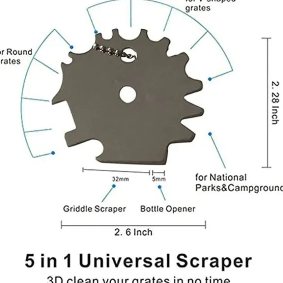 Hållbar konstruktion: Denna skrapa är tillverkad av högkvalitativt rostfritt stål och är byggd för att hålla. Den är resistent mot rost, korrosion och skevhet, vilket säkerställer långvarig prestanda för otaliga grillstunder framöver. Njut av ett pålitligt rengöringsverktyg som tål hög värme och frekvent användning.