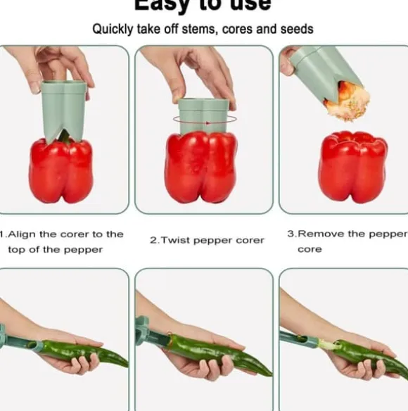 Förenkla ditt matlagning med detta uppgraderade 2-i-1 verktyg som effektivt kärnar ur och skär paprikor i en enda smidig rörelse!