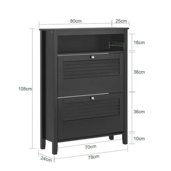 Design med flera lager och justerbar hylla på flera nivåer, gott om utrymme för hela familjens skor och stövlar.
