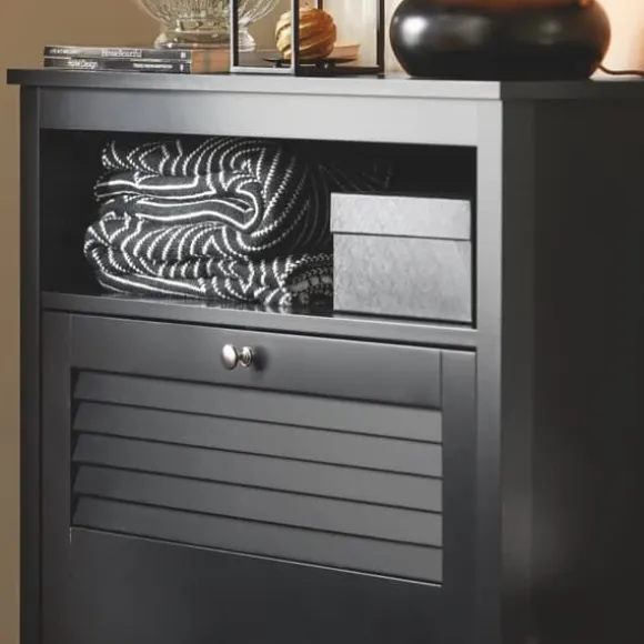 Vi rekommenderar att möbeln förankras i vägg med medföljande tippskydd så att den inte välter om ett barn klättrar eller hänger i den.