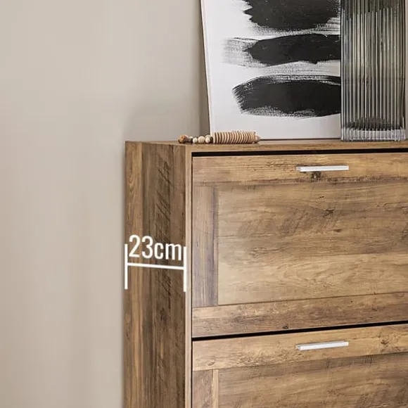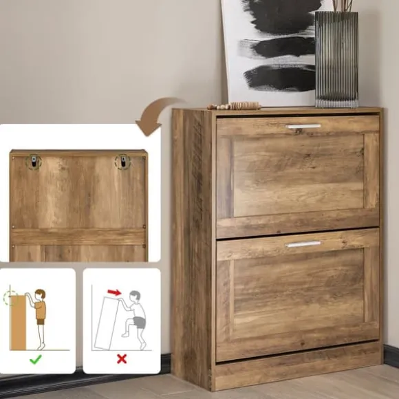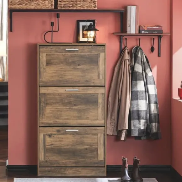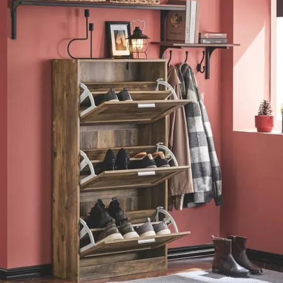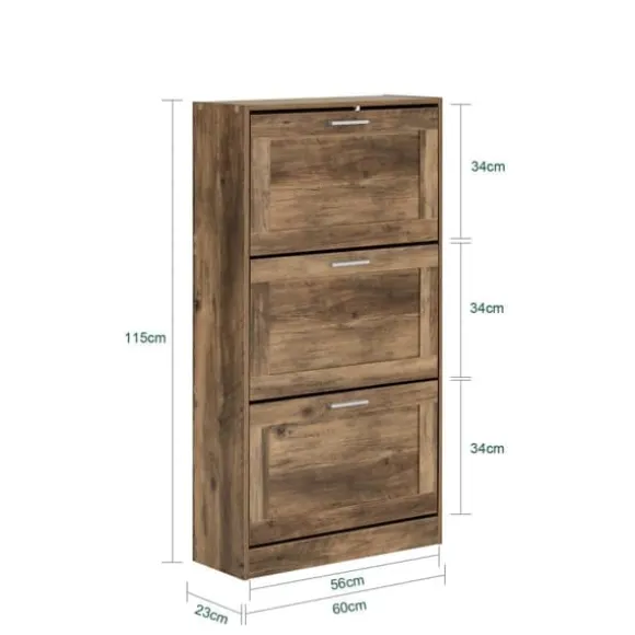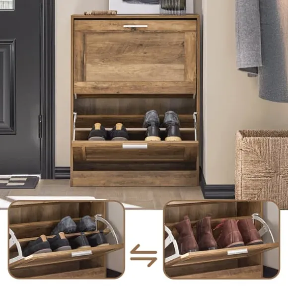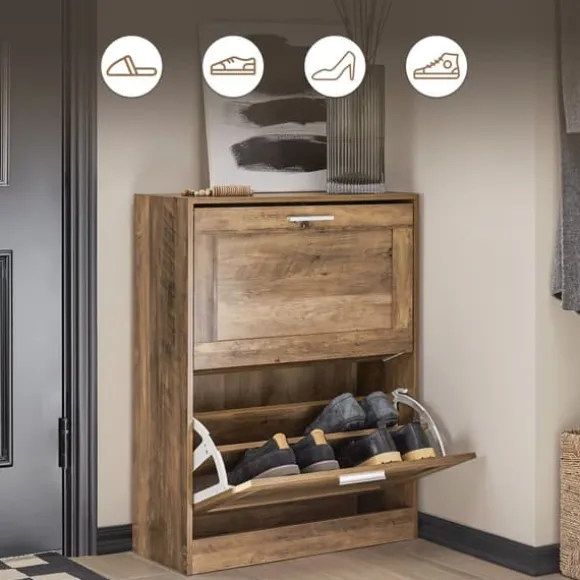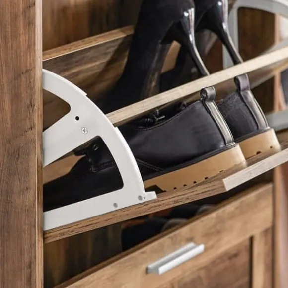 Ett skoskåp med tre vikbara fack där du kan förvara dina skor utom synhåll.