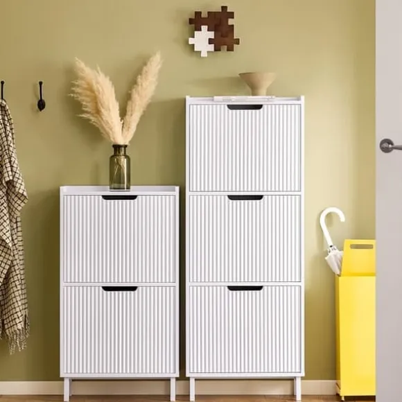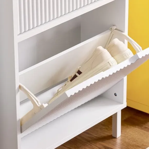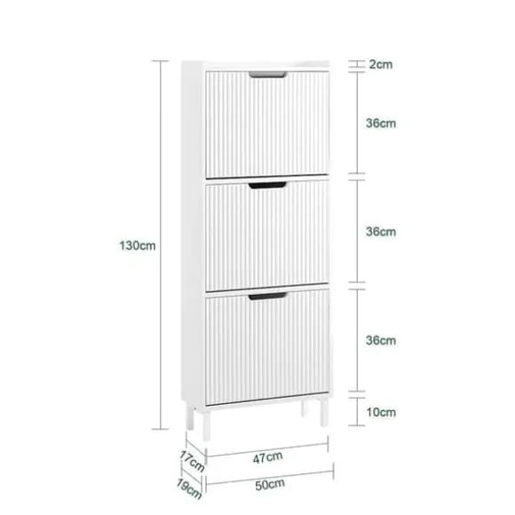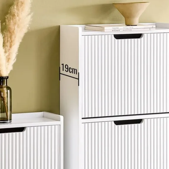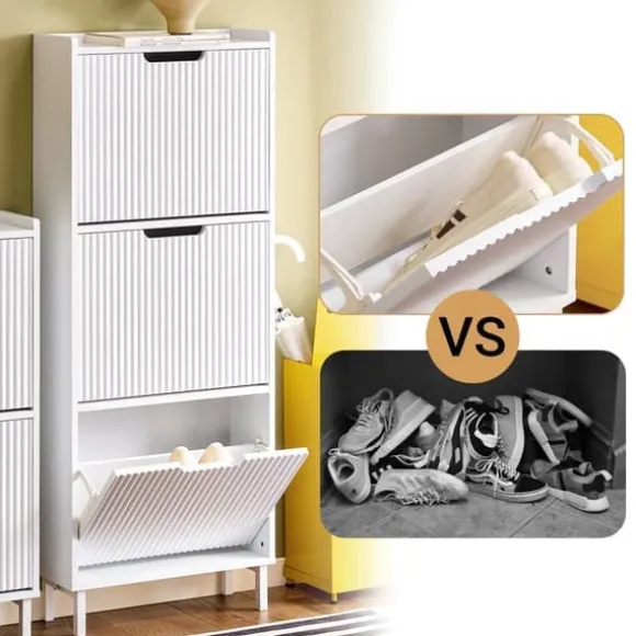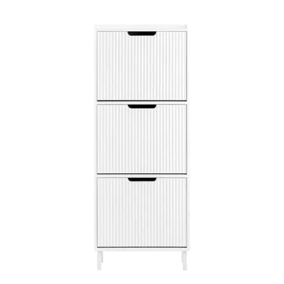Till skillnad från de flesta skåp har vårt skoskåp 3 tippdörrar. Dessa kan enkelt öppnas och stängas med handtagen. Den är också lämplig för trånga områden.