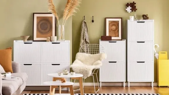 Skoskåpet med 2 våningar med 3 fack erbjuder plats för många skor, till exempel stövlar, höga klackar etc. Varje nivå har 2 fack, vilket gör att utrymmet används optimalt.