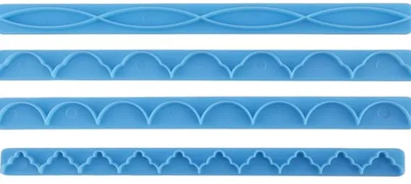 Vi erbjuder unika FRILLANKE sockerpastformar som låter dig skapa vackra och fina volanger på tårtor. Tillverkade av högkvalitativ plast garanterar de hållbarhet och precision under användning.