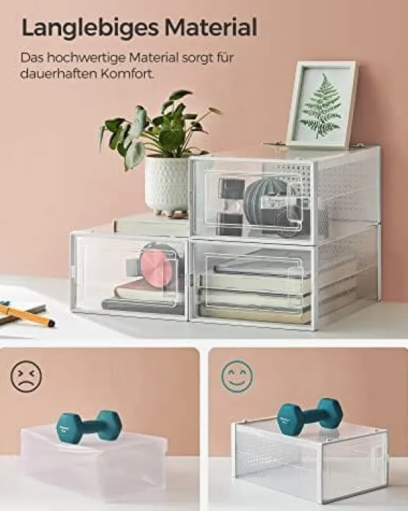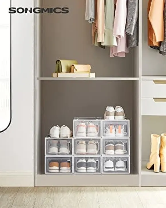 Vad du får: Pack med 8 transparenta skoboxar med tydlig ytterdörr, stapelbar och vikbar design, ventilationshål. Säg adjö till spridda skor överallt och lägg dina skor i ordning nu!