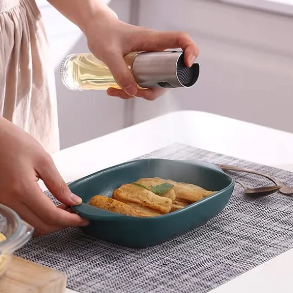 Smart oljeflaska med sprayfunktion: En sprayflaska för olja är en smart lösning för både plånboken, miljön och midjan! Genom att spraya ett tunt och jämt lager olja slösar du inte på olja, samtidigt som maten blir godare. Flaskan är lätt att hålla ren, den är slitstark och korrosionsbeständig.