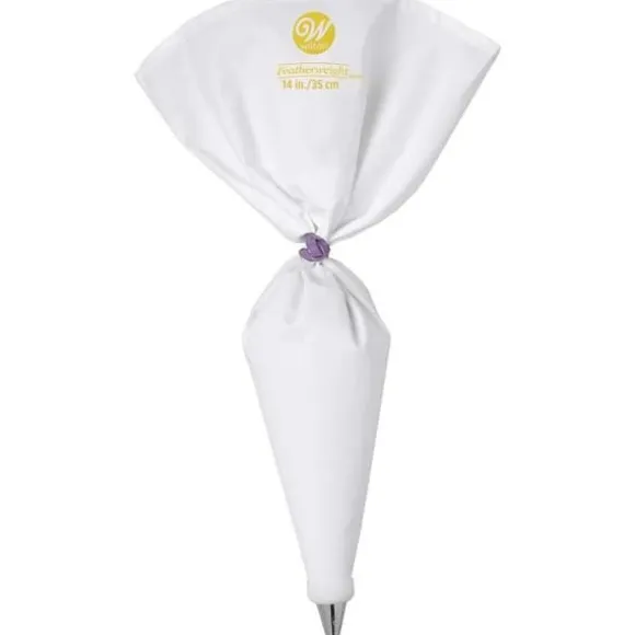 Denna Wilton spritspåse på 35 cm i lätt och slitstarkt polyester är perfekt för att dekorera tårtor, kakor och cupcakes. Återanvändbar, den stelnar inte och kan användas med eller utan koppling. Tvätta den i varmt vatten för enkel rengöring.