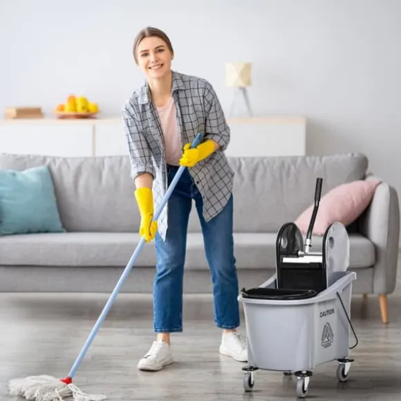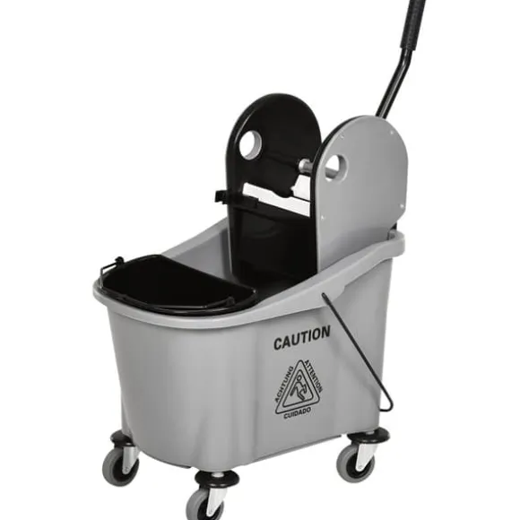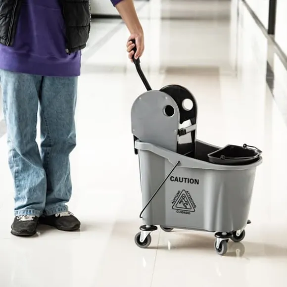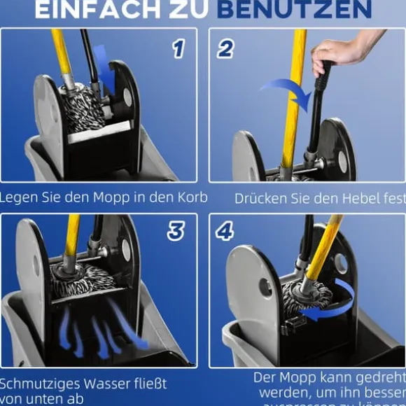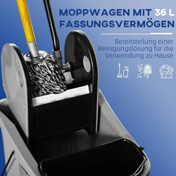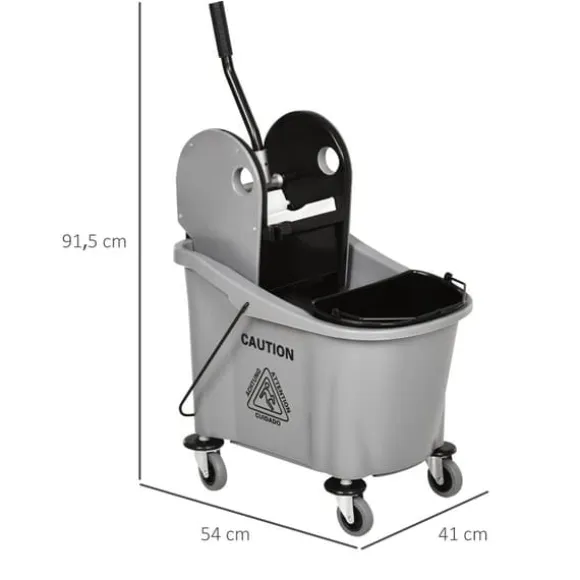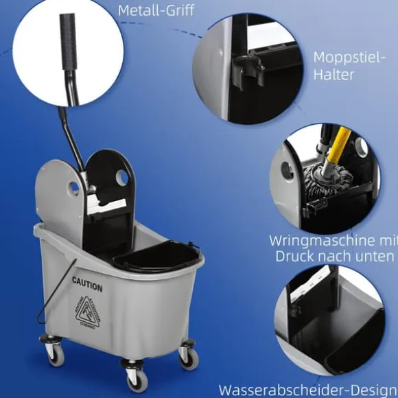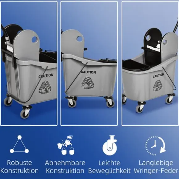 Denna professionella städtrolley erbjuder en effektiv lösning för hem-, kontors- eller kommersiell städning genom att hålla rent och smutsigt vatten åtskilt samt ge enkel rörlighet. Dess stora kapacitet och användarvänliga urvridare gör städuppgifterna mer bekväma och effektiva.