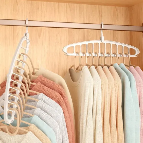 Denna ställ- och roterbara klädhängare är designad för att maximera din garderobsutrymme effektivt. Den är tillverkad av robust plast och dess vita färg passar in i alla typer av garderober. Hängaren gör det enkelt att hålla ordning på dina kläder och är perfekt för den som söker en organiserad och lättillgänglig förvaringslösning.