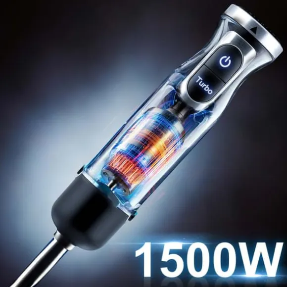 Den kraftfulla 1500 W-motorn med turbofunktion säkerställer blixtsnabb och effektiv mixning, även med de tuffaste ingredienserna.