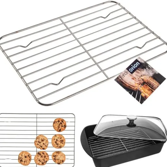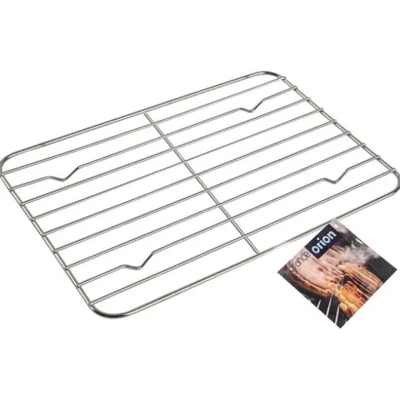 Metallgaller för långplåtar, perfekt för att kyla kakor eller dekorera pajer. Extremt användbart och mångsidigt i köket. Vi kommer att använda det till många köksuppgifter. Det är perfekt som en bakinsats i en långplåt eller bakplåt, vilket förhindrar att stekt kött fastnar i det smälta fettet. Ett kylgaller skyddar bänkskivan eller bordsskivan där du vill placera en varm rätt direkt från spisen eller ugnen. Originalprodukt från det tjeckiska märket Orion. Tillverkad i enlighet med europeiska standarder.