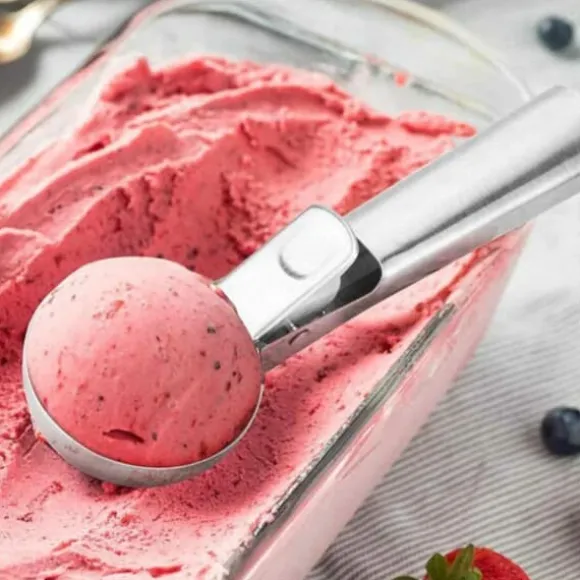Denna glasskopa är lika robust som den är praktisk. Dess ergonomiska handtag erbjuder ett bekvämt grepp, vilket gör det enkelt att skopa även den hårdaste glassen. Tack vare att den är tillverkad av rostfritt stål kommer den att hålla länge.