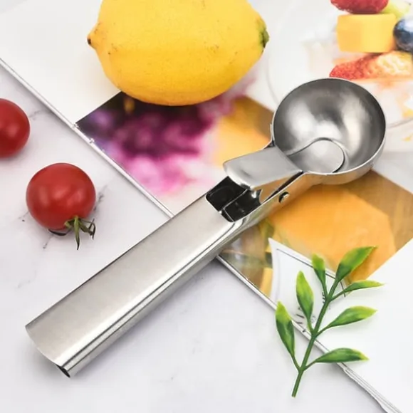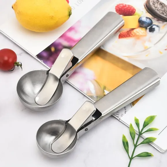 Mångsidig design: Glasskopans mångsidiga design gör den perfekt för att ösa och servera en mängd andra godsaker, såsom sorbet, gelato, fryst yoghurt, kakdeg och till och med potatismos. Möjligheterna är oändliga!