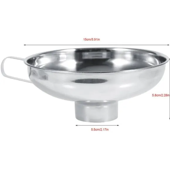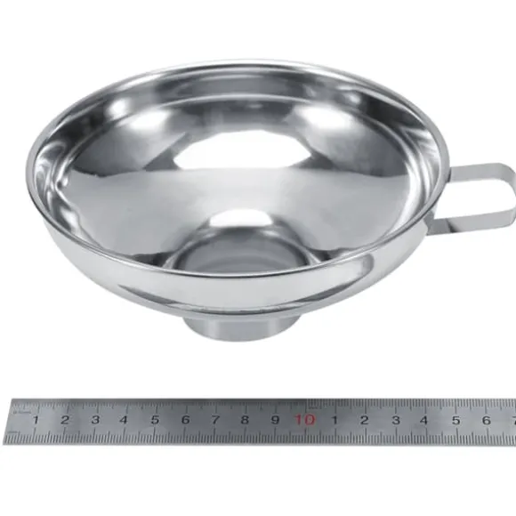 Välkommen till vår butik! Denna tratt i rostfritt stål är gjord av robust rostfritt stål, vilket säkerställer att den är lätt, hållbar och kommer aldrig att rosta. Det är också lätt att rengöra, vilket gör det till ett praktiskt verktyg för ditt kök.