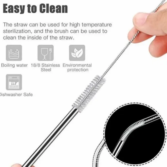 Våra sugrör av rostfritt stål kommer i förpackning om 6. Med följer en liten borste för extra noggrann rengöring.