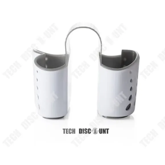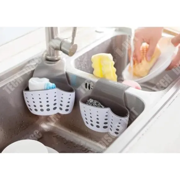 Upphängd svampstöd för diskho i TPR, med måtten 14.5 x 14 x 12.4 cm. Praktisk och funktionell, den har 2 fack för att förvara svampar, tvål och borstar, samtidigt som den möjliggör snabb torkning tack vare sina många hål i botten.