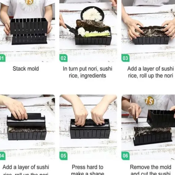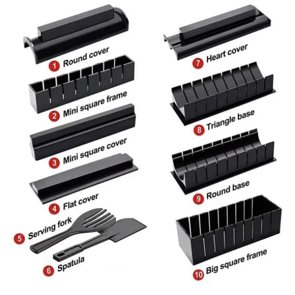 Detta set med 11 TD® sushiverktyg är perfekt för entusiaster av kreativ matlagning. Tillverkat i ABS, är det lätt (680 g) och enkelt att använda tack vare tydliga instruktioner. Perfekt för att göra sushi hemma, mäter det 26*15*8.5 cm.