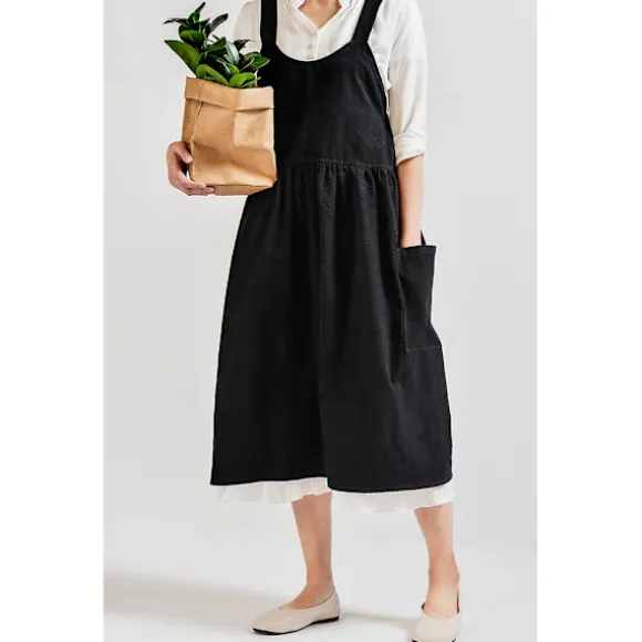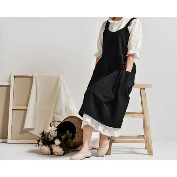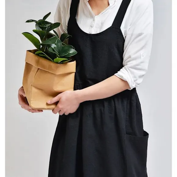 Fläckresistent Skydd: Detta svarta bomullsförkläde ger utmärkt skydd mot fläckar och spill, vilket håller dina kläder rena och presentabla oavsett om du lagar mat i köket, arrangerar blommor i en butik eller arbetar med ett hantverksprojekt. Den fullständiga täckningen säkerställer att dina kläder är skyddade från potentiella olyckor, vilket gör det idealiskt för olika aktiviteter. Den mörka färgen på förklädet hjälper också till att dölja fläckar, vilket bibehåller ett professionellt utseende även efter längre användning. Perfekt för kockar, florister, konstnärer och gör-det-själv-entusiaster.