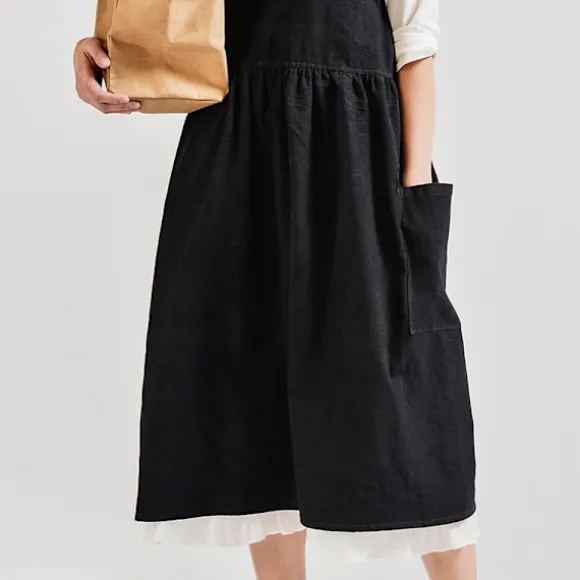 Bekvämt Bomullsmaterial: Tillverkat av högkvalitativ bomull, erbjuder detta förkläde exceptionell komfort och andningsförmåga, vilket gör att du kan bära det under längre perioder utan att känna dig begränsad eller överhettad. Det mjuka och lätta tyget draperar sig bekvämt över din kropp och ger en behaglig bärupplevelse. Bomull är också känt för sina absorberande egenskaper, vilket hjälper till att transportera bort fukt och hålla dig sval och torr. Detta gör förklädet idealiskt för användning i varma miljöer eller under fysiskt krävande aktiviteter. De naturliga fibrerna är skonsamma mot huden, vilket förhindrar irritation och säkerställer maximal komfort hela dagen.