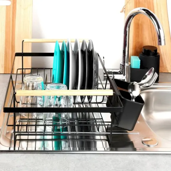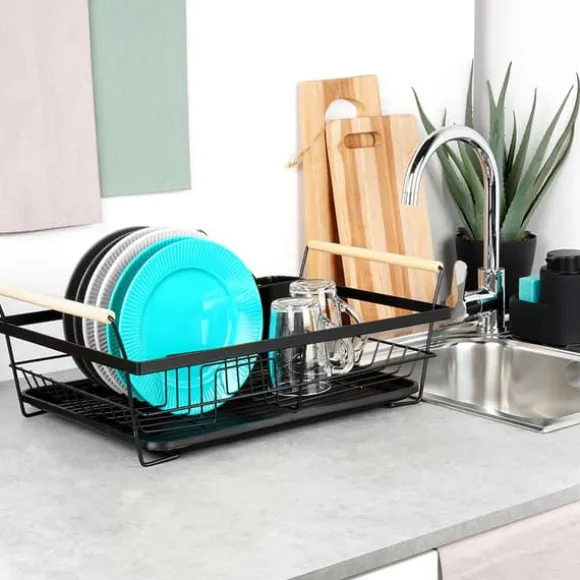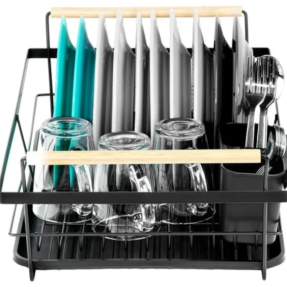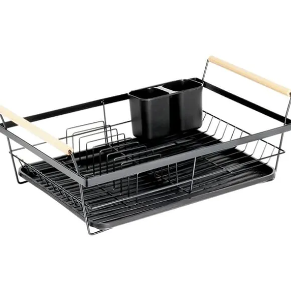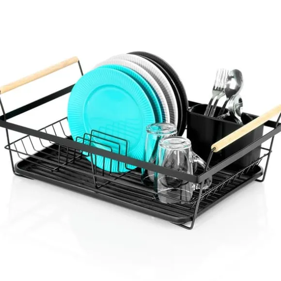 ✅ Solid och hållbar – Torkställning tillverkad av rostbeständig metall i svart. Utrustad med en avtagbar bricka och bestickställ tillverkad av svart plast av högsta kvalitet.