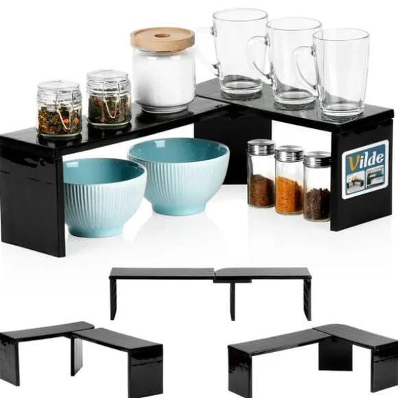 En praktisk hylla som är idealisk för att organisera ditt kök. Hyllan kan användas i ett hörn- eller längsgående utförande, vilket gör att du kan dela upp en bänkskiva eller ett skåp i två sektioner, vilket ger extra förvaringsutrymme för kökstillbehör. Denna hylla är extremt mångsidig. Den perfekta lösningen för dig som vill effektivt använda tillgängligt utrymme i skåp eller på bänkskivan. Original Vilde-produkt. Tillverkad i enlighet med europeiska standarder.