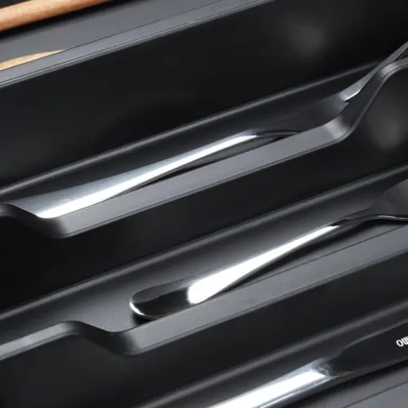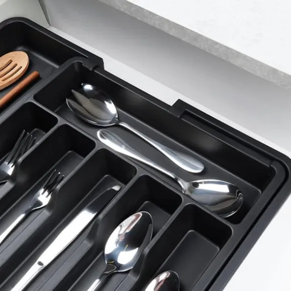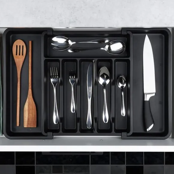 ✅ Bestick- och köksredskapsinsats – Utdragbar bestick- och köksredskapsförvaring som gör att du enkelt kan organisera knivar och bestick. När den är utfälld mäter insatsen 56,5 x 37,5 x 5 cm. Perfekt för bestick, knivar och kökstillbehör.