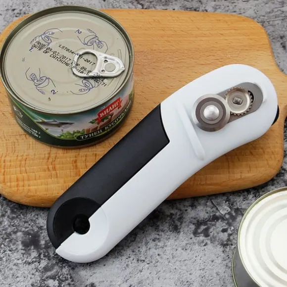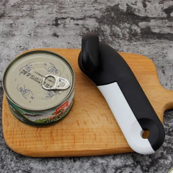 Enkel Konservöppning: Denna konservöppnare är utformad med ett vasst blad och ergonomiskt handtag för smidig och enkel konservöppning. Dess robusta mekanism säkerställer en ren skärning varje gång, vilket förhindrar ojämna kanter och minimerar risken för skador.