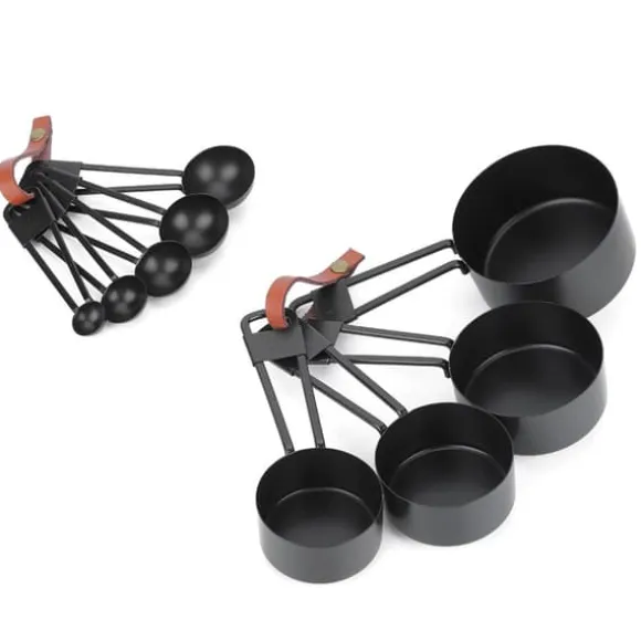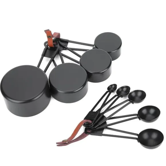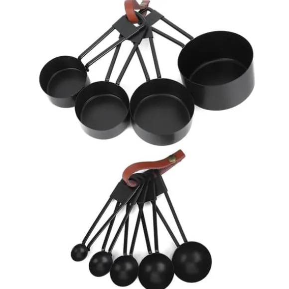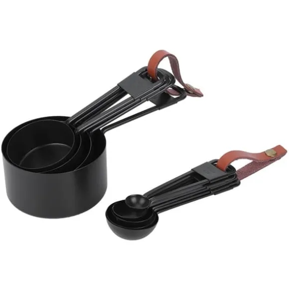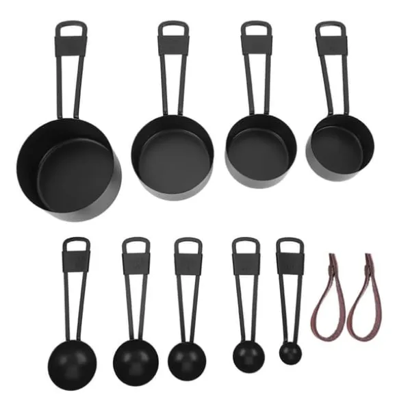 Setet innehåller 9 måttskedar i olika storlekar, allt från 1 kopp till 1/4 tsk. Muggarna häckar inuti varandra för effektiv förvaring, vilket sparar utrymme i ditt kök.