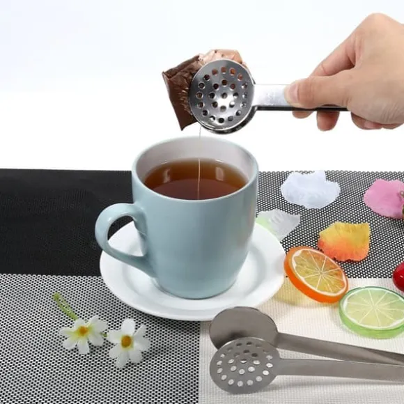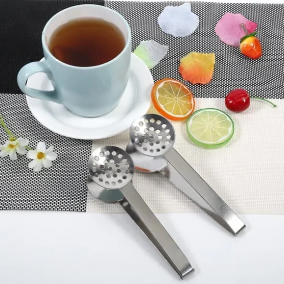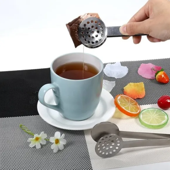 Välkommen till vår butik! 2 st Kökshantverksverktyg rostfritt stål rund tepåse tång presshållare grepp. Tillverkad av högkvalitativt rostfritt stål, dessa tång är robusta och hållbara. De är designade med en solid platta och en platta av siltyp, vilket gör att du enkelt kan extrahera varenda droppe smak ur din tepåse utan att stöka. Fleranvändningsklämman kan också användas för att klippa te, citronskivor, mat och filterte. Att ta bort tepåsar från en mugg är enkelt och säkert med denna tång. De är också lätta att använda och rengöra.