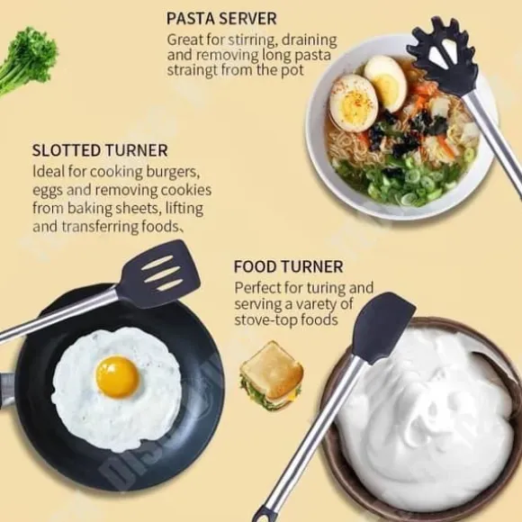 Produktnamn: 8 st Köksredskapssats, Si Spatelset Kategori: KÖKSTILLBEHÖRSSET Färg: svart Egenskaper: Hemmabruk, med förvaringsfunktion, halkfri sitsdesign, livsmedelsgodkänd hård silikonplast. Det dubbla lagret är rent och brett, lägligt. Stark kant, bekvämt hängande hål, bekväm förvaring. 1. Tillverkad av silikagel