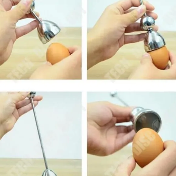 Produktnamn: Rå rostfritt stål Egg Shell Topper Co Kategori: EGG SEPARATÖR Färg(er): Silver Rostfritt stål Äggskal Cutter Topper Raw Egg Opener Köksverktyg Prylar Beskrivning: 100% helt ny och hög kvalitet. Praktiskt och roligt för familjens frukostbord. Denna funktionella pryl som håller ditt ägg fritt från skalfragment.