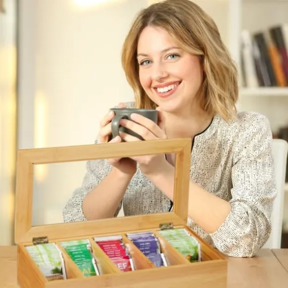 Håll din tesamling prydligt organiserad med denna tebox i bambu, designad för enkel åtkomst och en tydlig överblick över dina favoritblandningar. Dess mångsidiga design gör den lämplig att använda i köket eller runt om i hemmet, och den kan även användas för att förvara kosmetika eller hobbymaterial. Denna tebox är en praktisk och stilren presentidé för alla tillfällen.