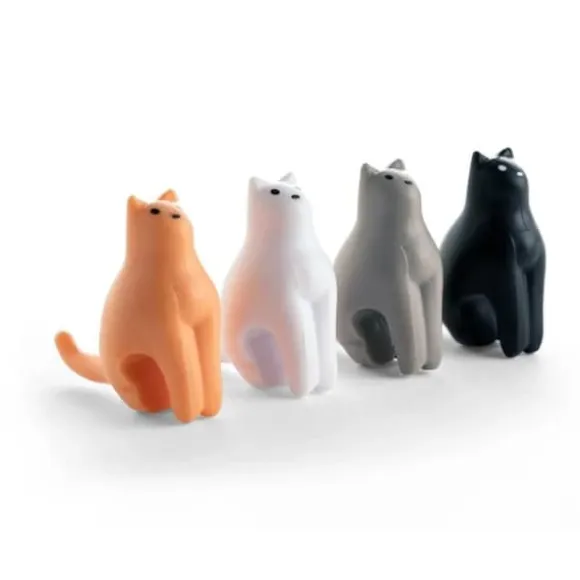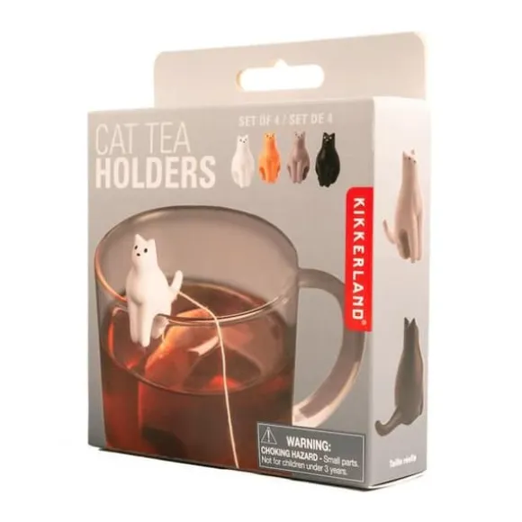 Katten har ditt te? Ingen panik, han har inte spilt det, han håller ett stiligt öga på det! Detta set med 4 bedårande tepåsar i olika färger är här för att förhindra att din påse spelar dykare av yttersta grad i din kopp. Häng helt enkelt påsen i kattens svans, ställ denna lilla katt i livsmedelsklassad TPE (och diskmaskinssäker, för en ren katt är sällsynt).