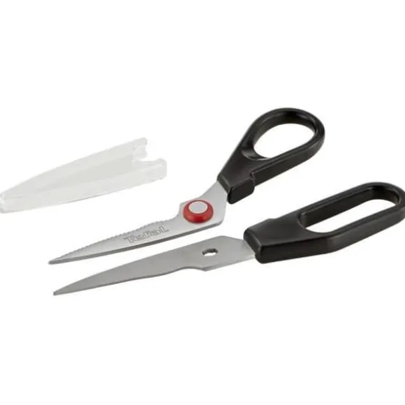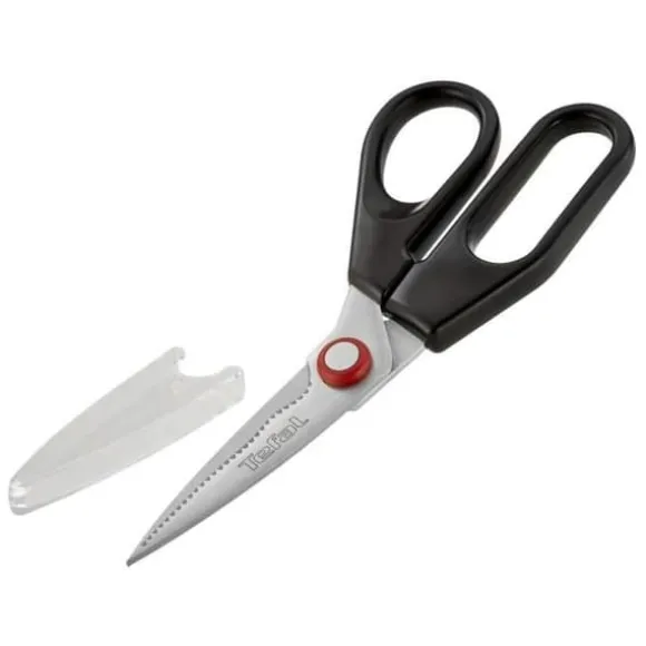 INGENIO skårad sax från TEFAL i plast och rostfria blad, färger: röd och svart. Bekväma handtag för effektiv skärning. Säkerhets- och hygienskydd för förvaring av redskapet. Idealisk för att baka eller förbereda fisk. Föredragen rengöring för hand: löstagbara blad för enkelhet.