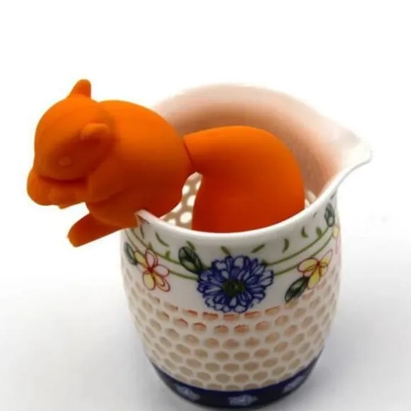 Teinfuser i silikon i form av ekorre, perfekt för löste. Mått: 7 cm x 7 cm x 3 cm. Slumptäck färg, diskmaskins- och mikrovågsugnssäker. Ett praktiskt och säkert tillbehör för ditt kök.