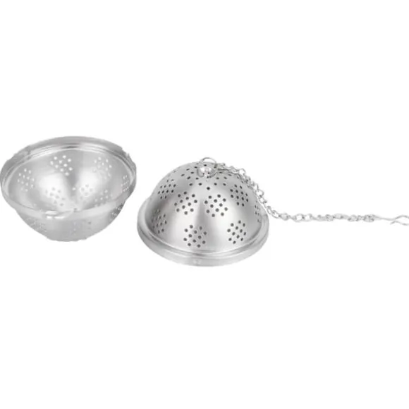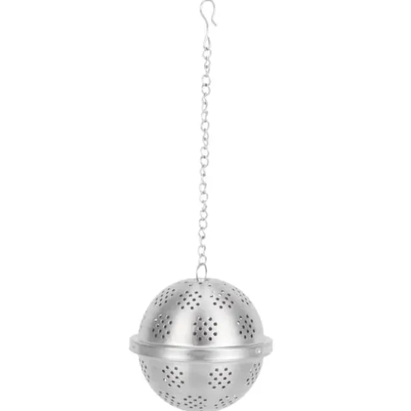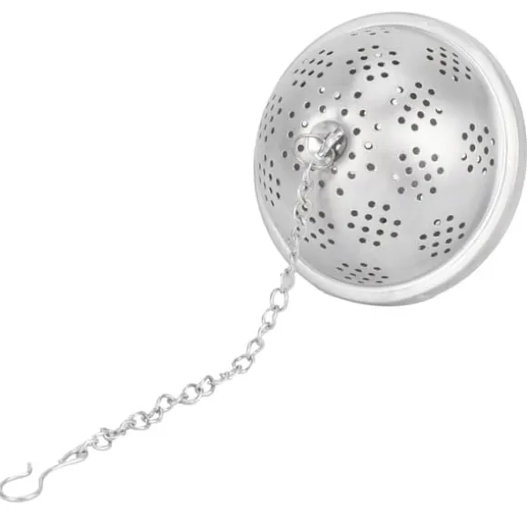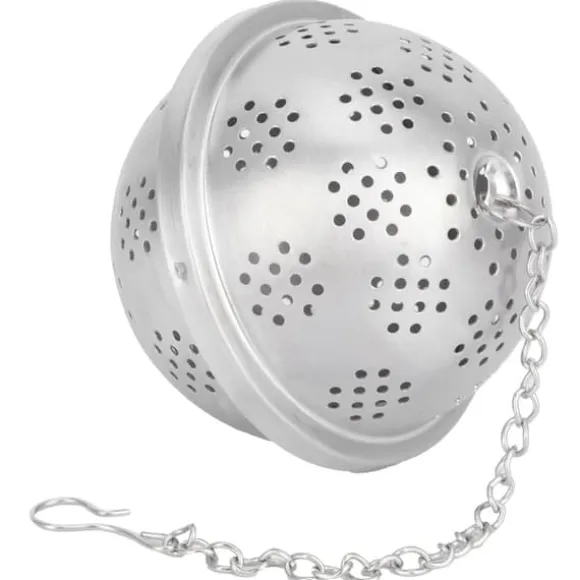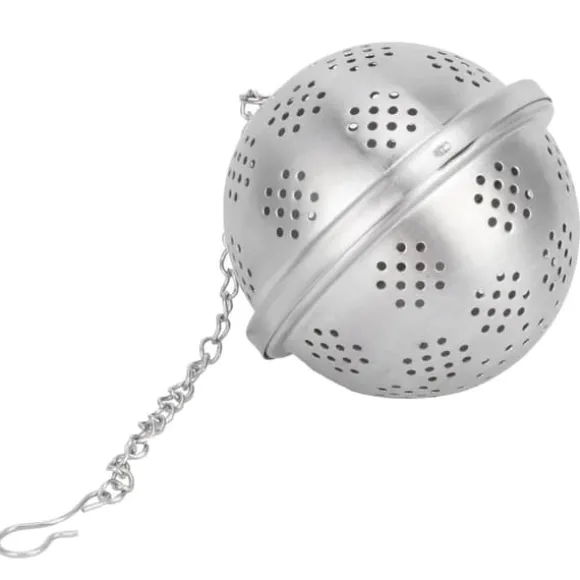Filterkulan har en mängd olika användningsområden och kan lätt användas för att filtrera te, kryddor, ingredienser i varma krukor och mer. Den är designad med ett roterande lås, vilket gör det bekvämt att öppna och stänga, samtidigt som det förhindrar att rester rinner ut.