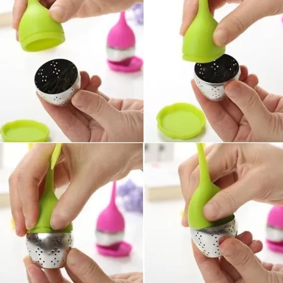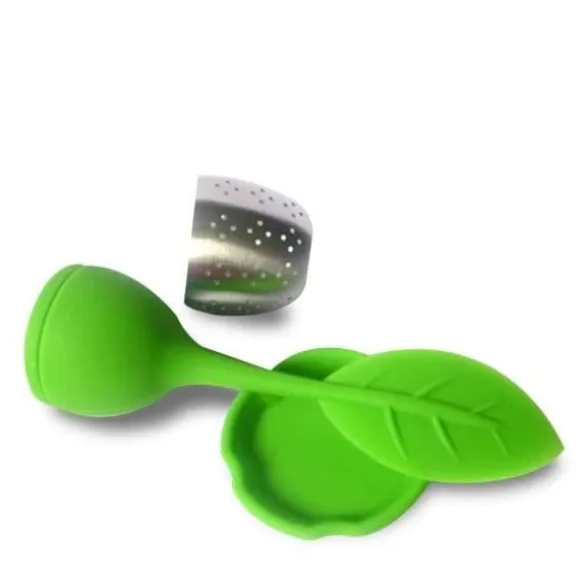 Förbered ditt te med denna bladformade teinfusion, som kommer med ett stativ. Tillverkad av rostfritt stål och silikon, mäter den 15,8 x 5 cm. Perfekt för att njuta av en riktigt färsk kopp te, den är idealisk för vuxna.