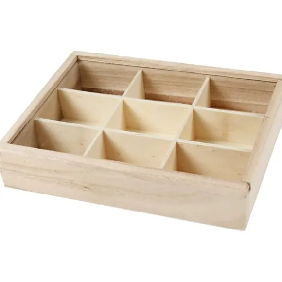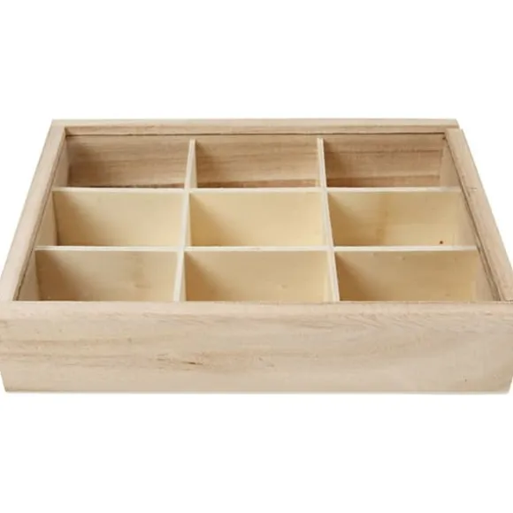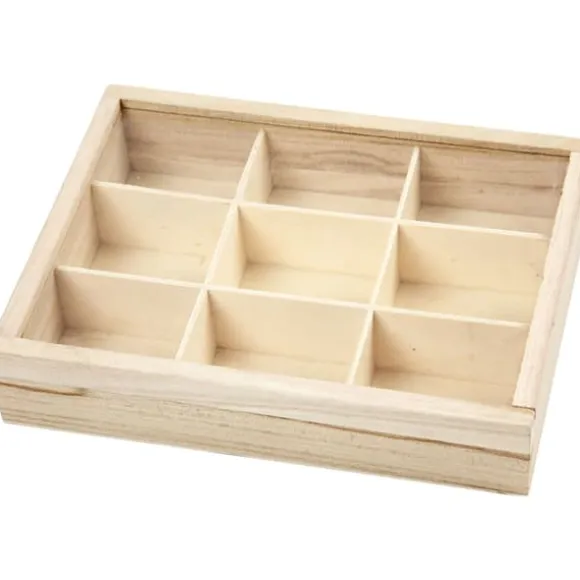 Ask med 9 fack (3,5×5 cm) och skyddslock i glas
